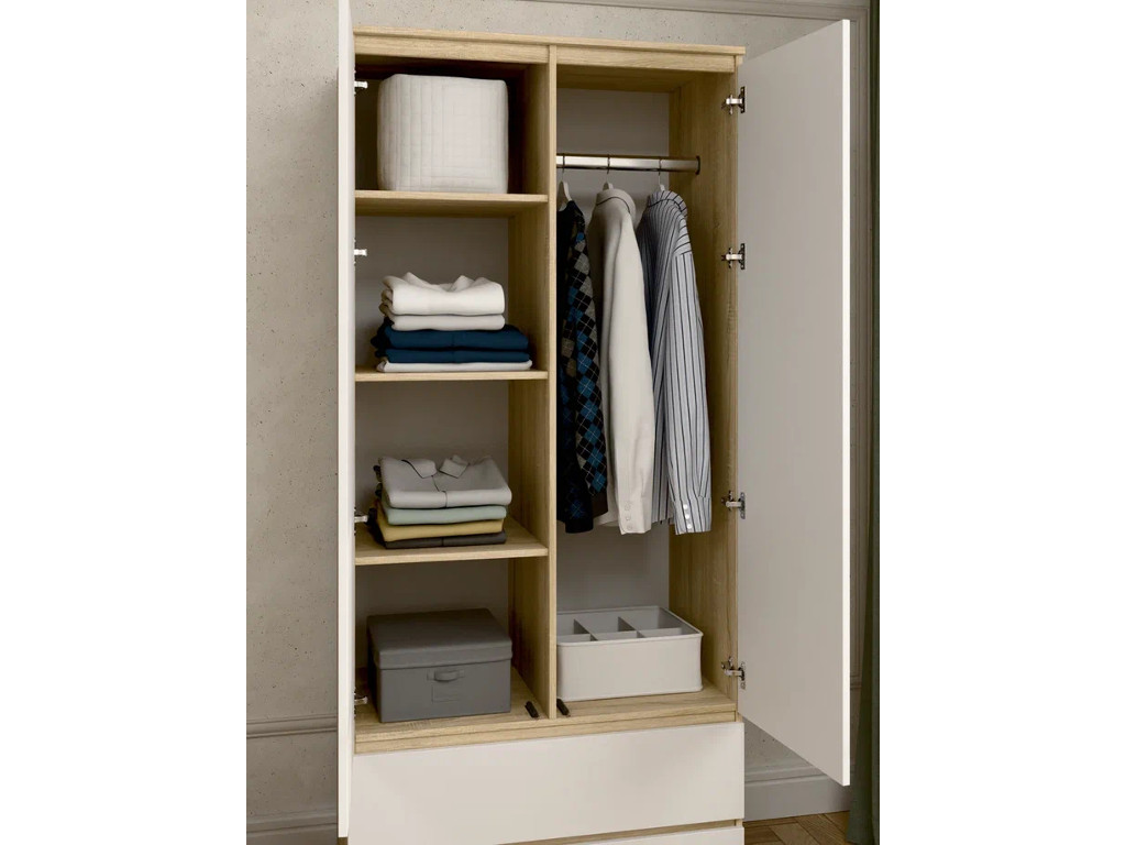 - Шкаф 2-хстворчатый с 2-мя ящиками Прайм Сонома/Белый