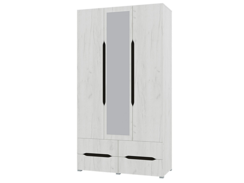 - Шкаф 3х створчатый 4 ящика Вега с зеркалом Крафт белый