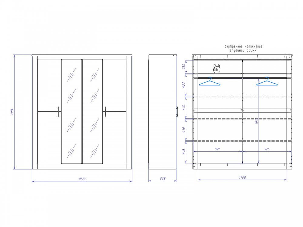 Размер ШхГхВ: 1920*538*2194 мм