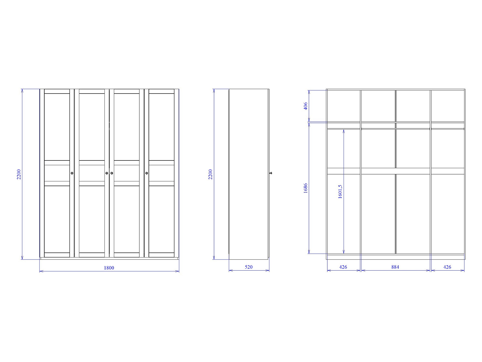 - Шкаф 4-х дверный Фрея с глухими дверями