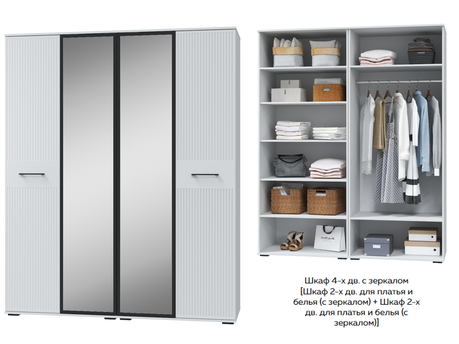 - Шкаф четырехдверный Шарлиз с зеркалом
