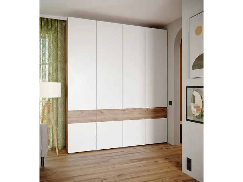 Шкаф четырехдверный Мерида дуб крафт табачный/белый