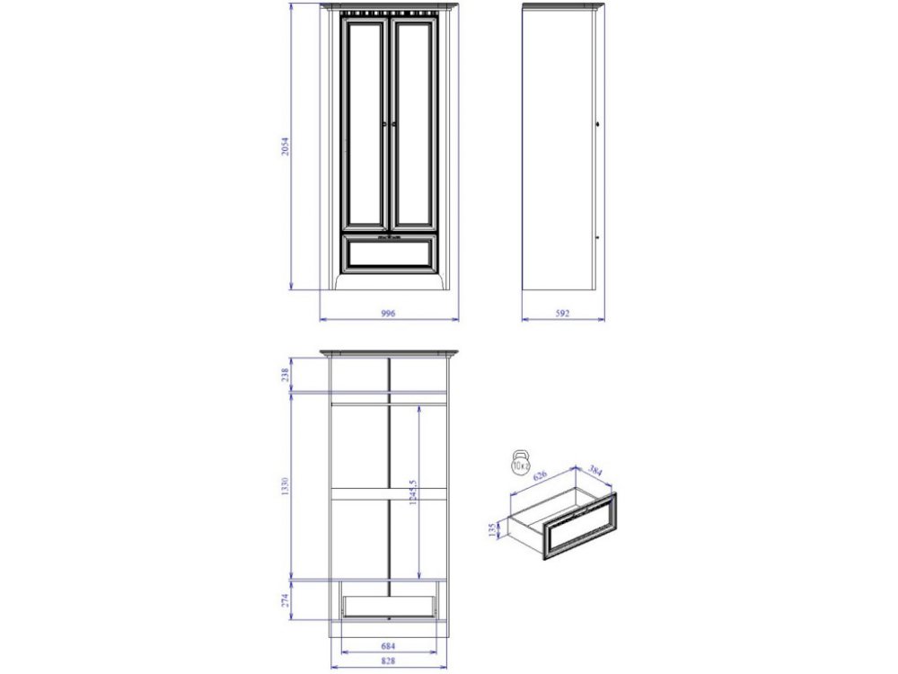 Размер ШхГхВ: 996*592*2054 мм