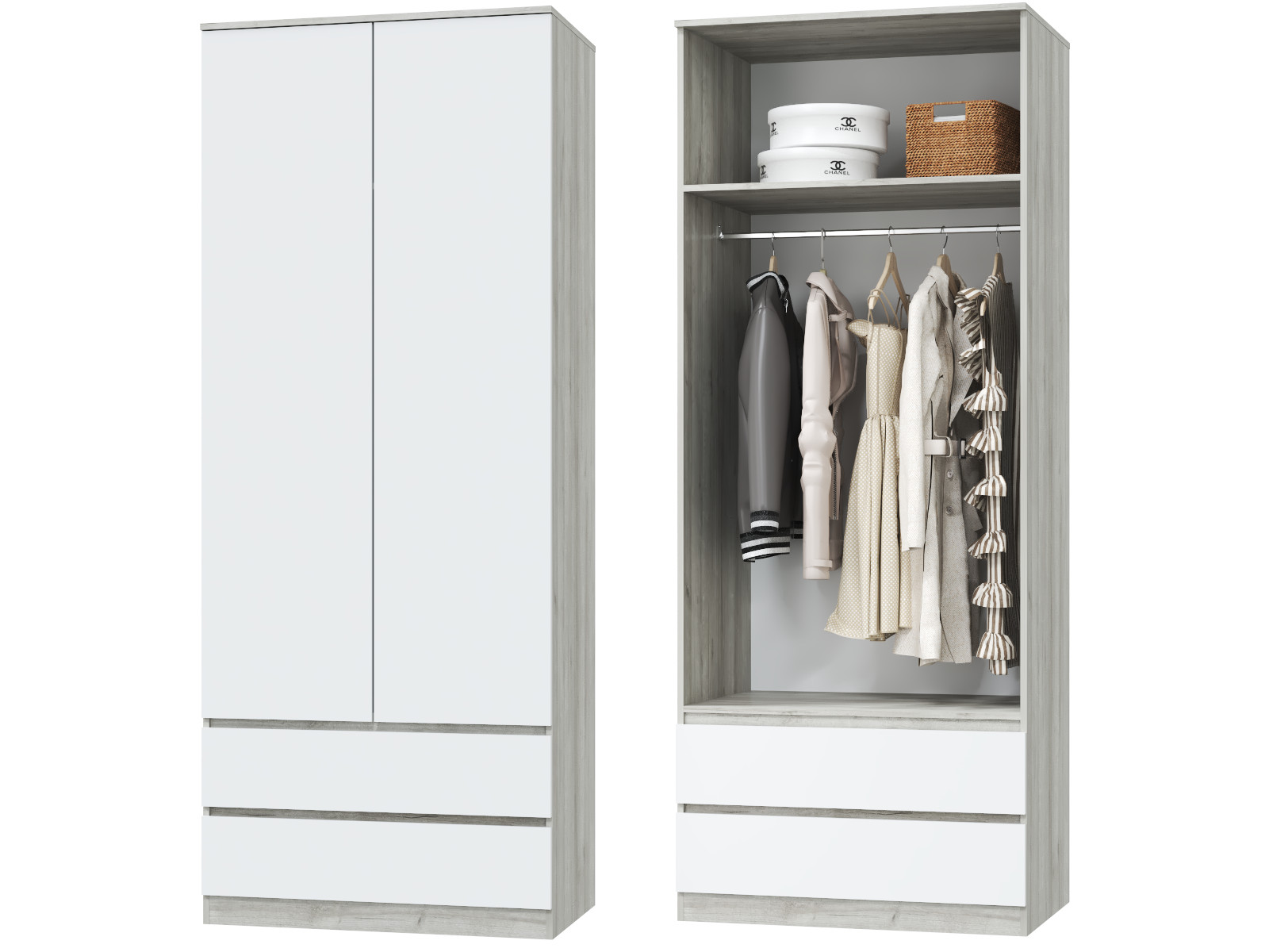 - Шкаф для одежды 2х дверный с ящиками Лори дуб серый, белый