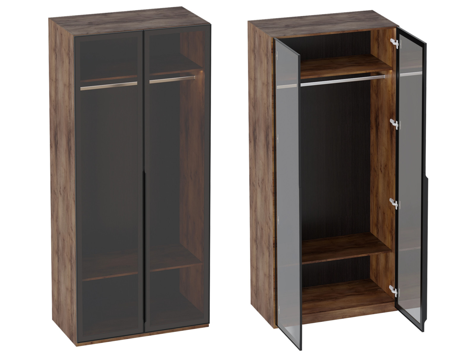Шкаф двухстворчатый Браун со стеклянными дверями без светильника