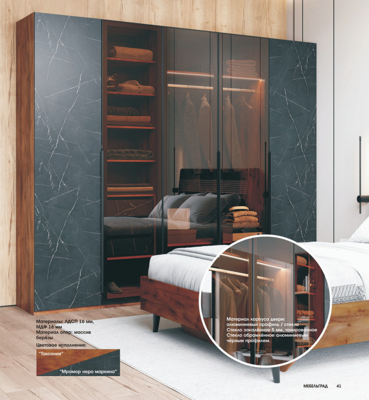 Шкаф двухстворчатый Браун со стеклянными дверями со светильником