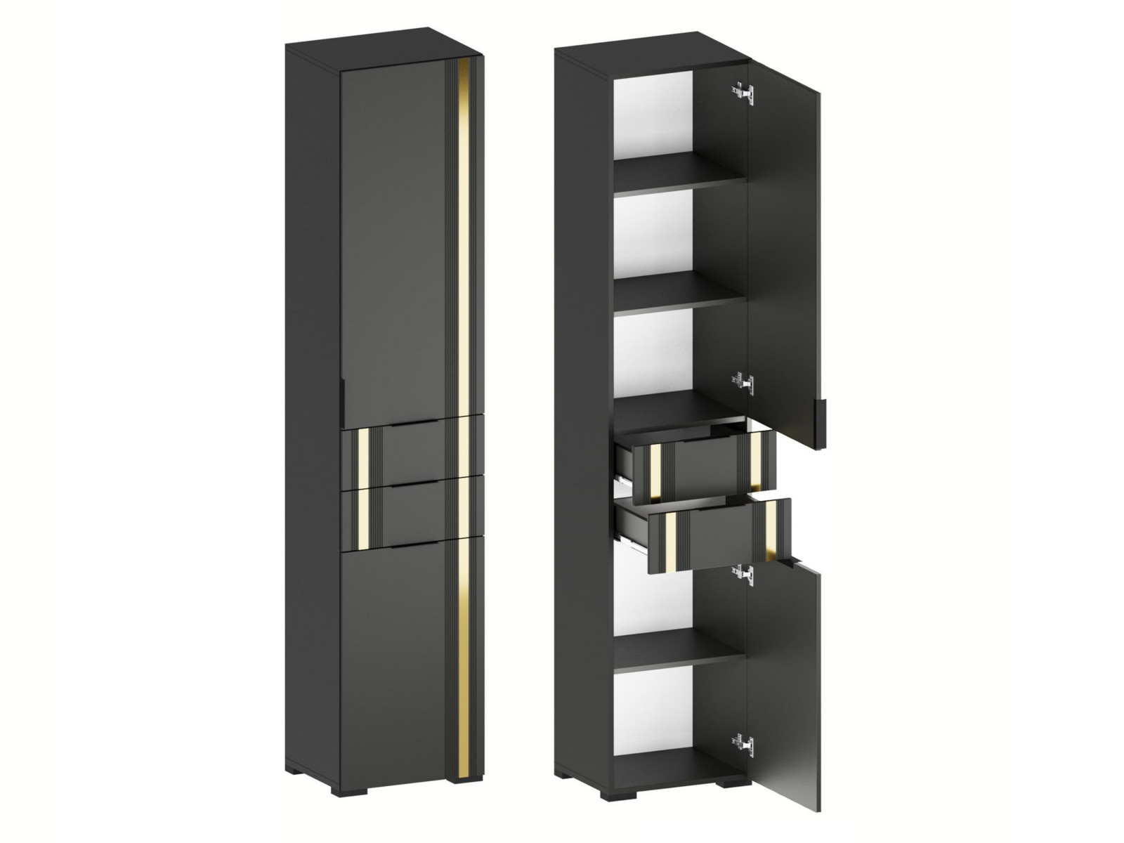 - Фасады из МДФ с оригинальной фрезеровкой покрыты суперматовой пленкой с эффектом Soft Touch в цветах Графит и Milk.