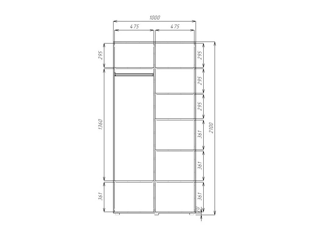 - Высота, мм: 2100