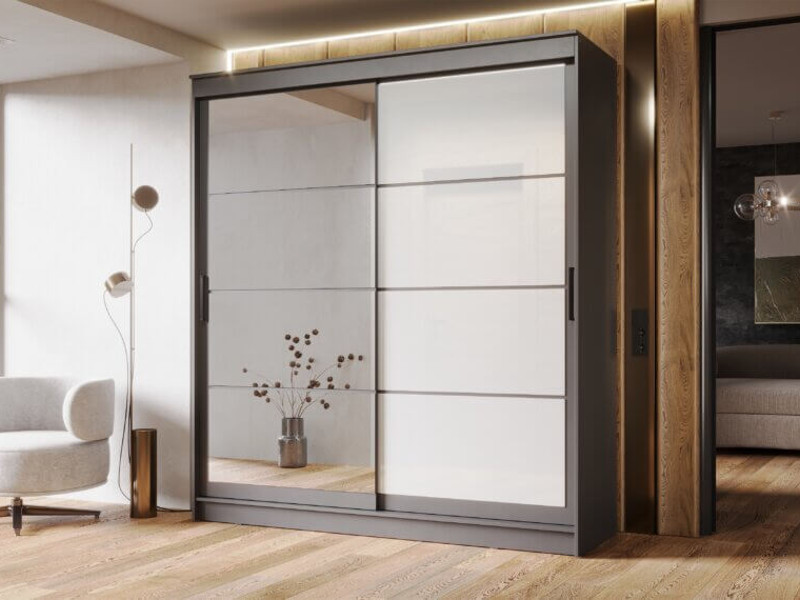 Шкаф-купе Гранд-1 2000 Графит-двери Зеркало-Лакобель белый