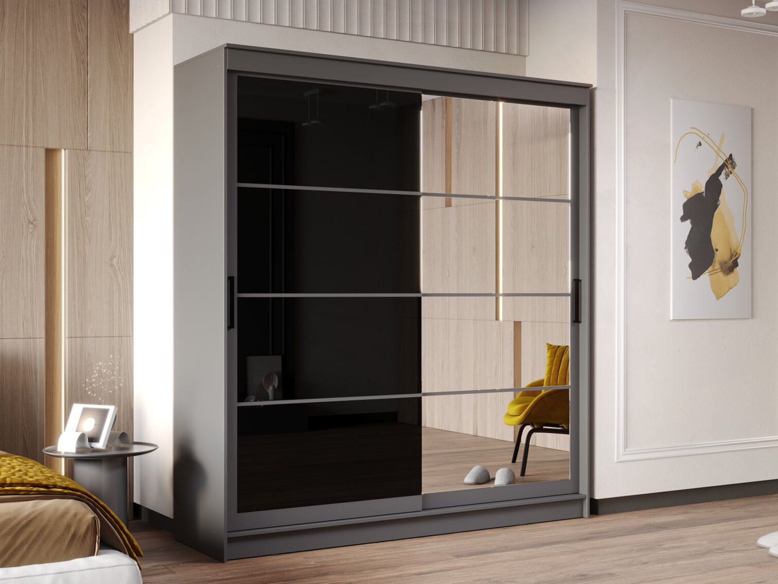 Шкаф-купе Гранд-1 2000 Графит-двери Зеркало-Лакобель черный