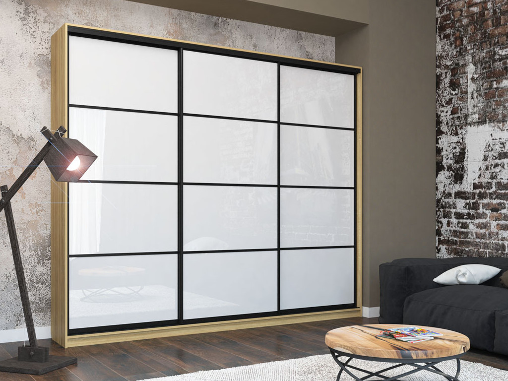 Шкаф-купе Лофт Шк30-47 3000 3 двери глубина 470 фасад МДФ белый глянец 3г