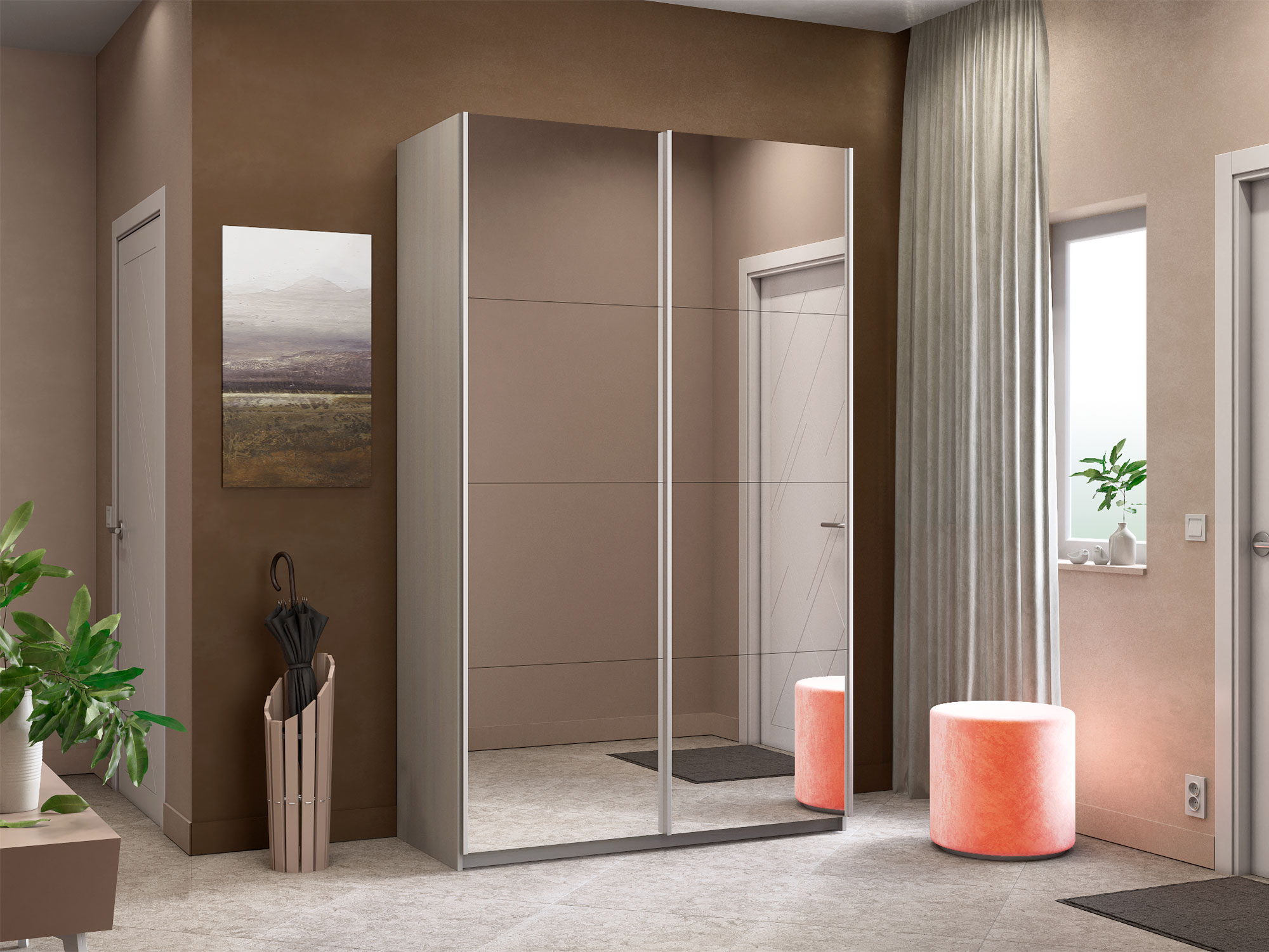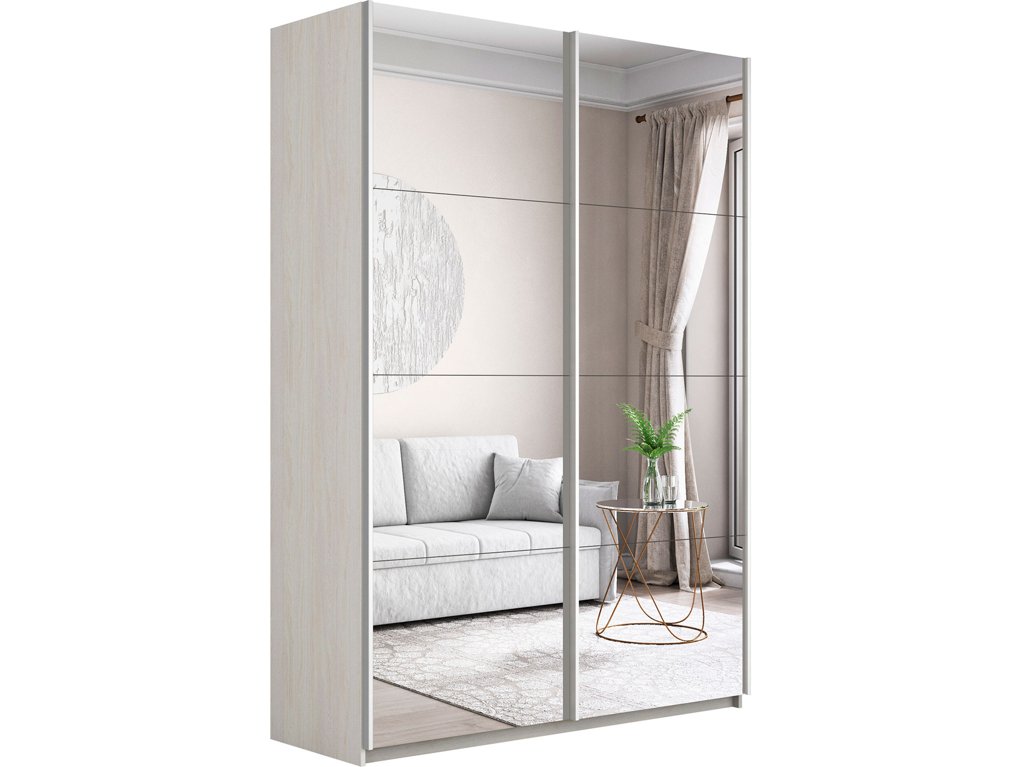 - Шкаф-купе Прайм 2-х дверный 1200 два зеркала Ясень Анкор Светлый
