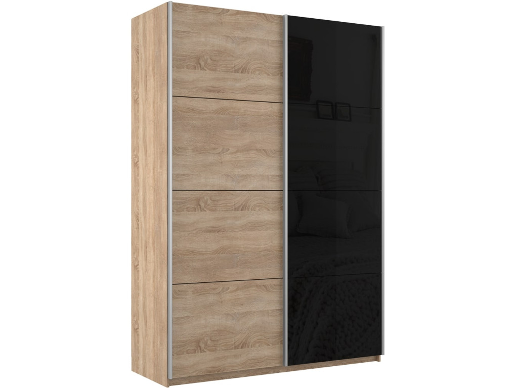 - Шкаф-купе Прайм 2-х дверный 1400 ДСП/Стекло Черное Сонома