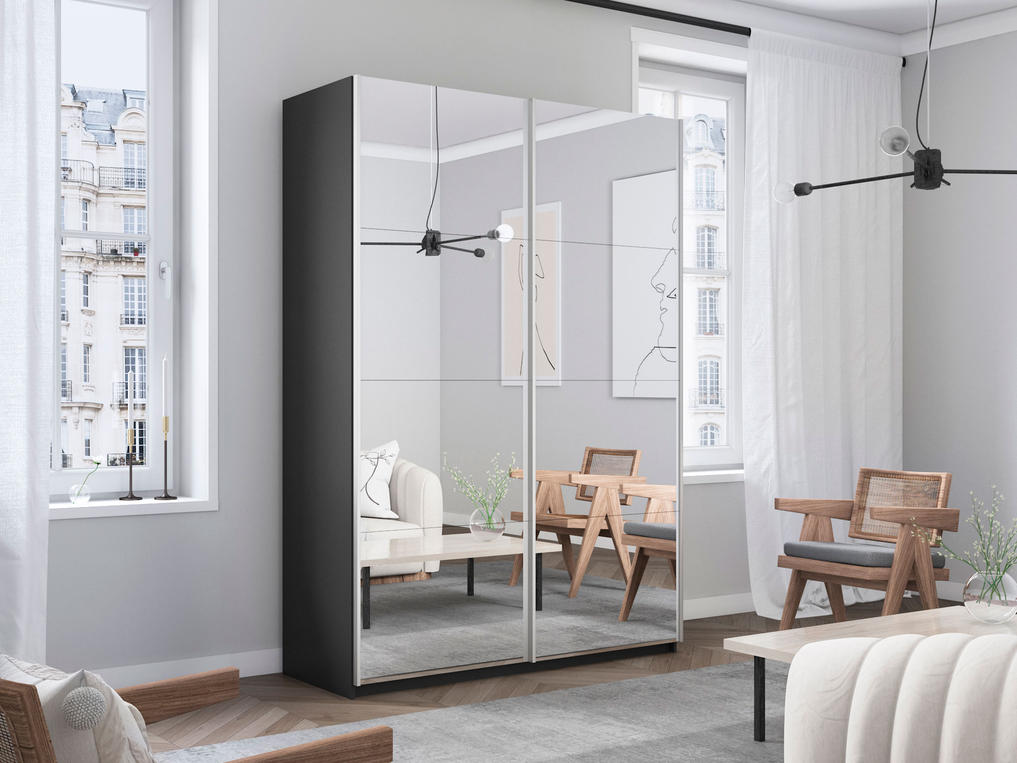 - Шкаф-купе Прайм 2-х дверный 1600 два зеркала Серый Диамант
