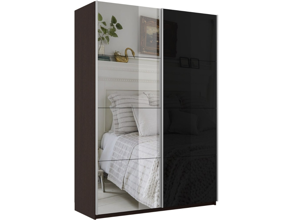 - Шкаф-купе Прайм 2-х дверный 1600 Зеркало/Стекло Черное Венге