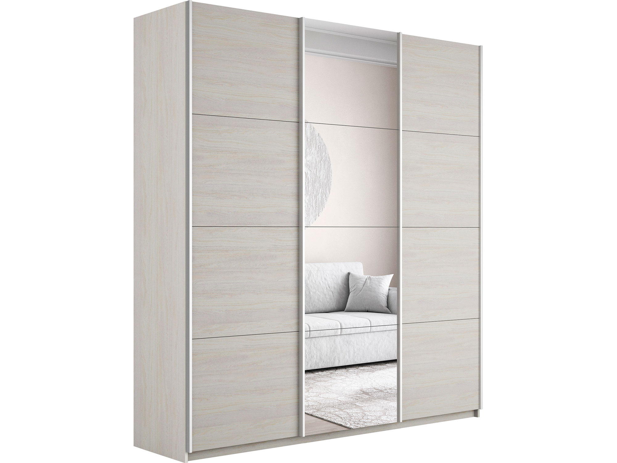 - Шкаф-купе Прайм 3-х дверный 1800 ДСП/зеркало/ДСП Ясень Анкор Светлый