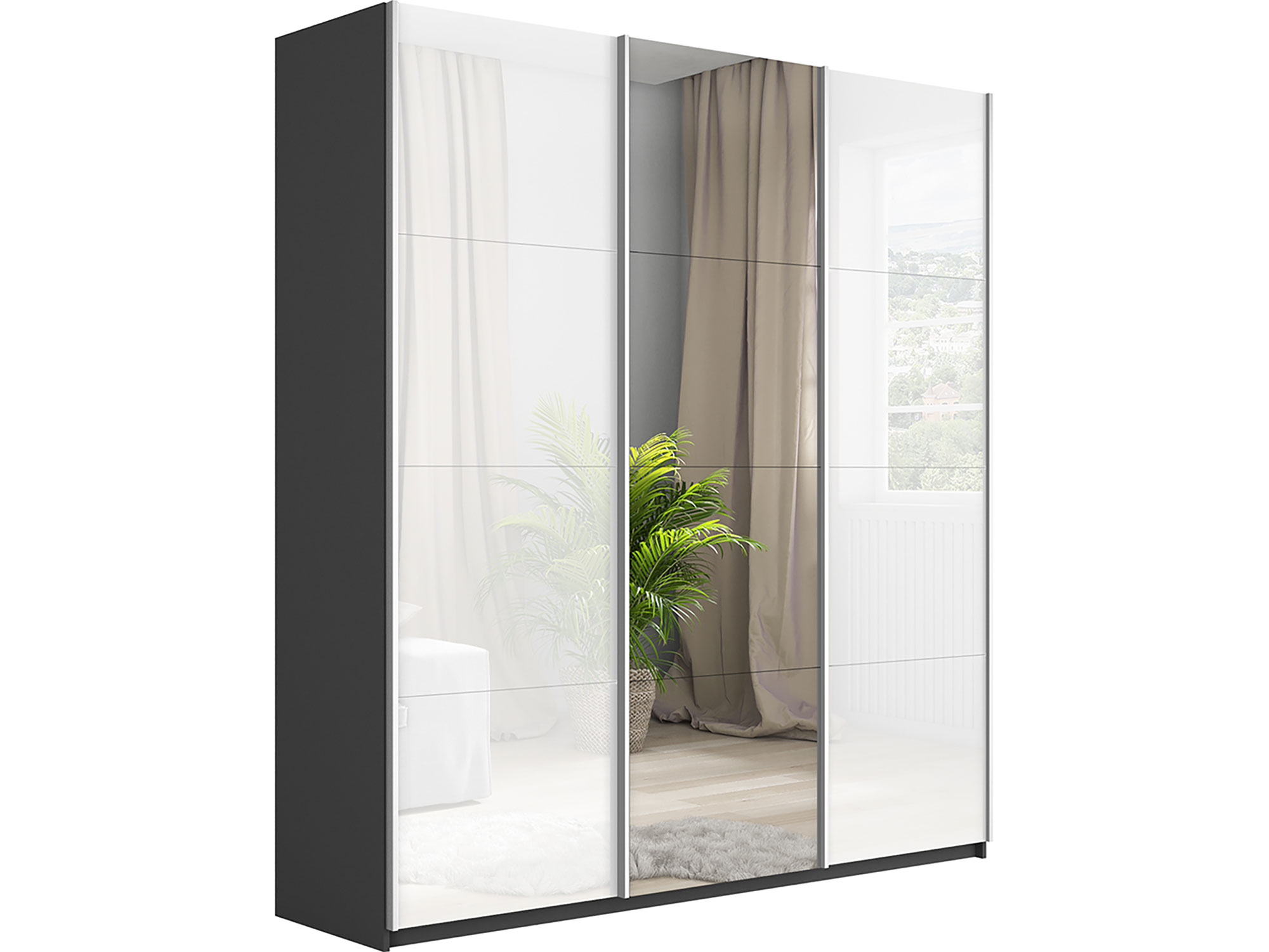 - Шкаф-купе Прайм 3-х дверный 1800 два Стекла Белые/Зеркало Серый Диамант