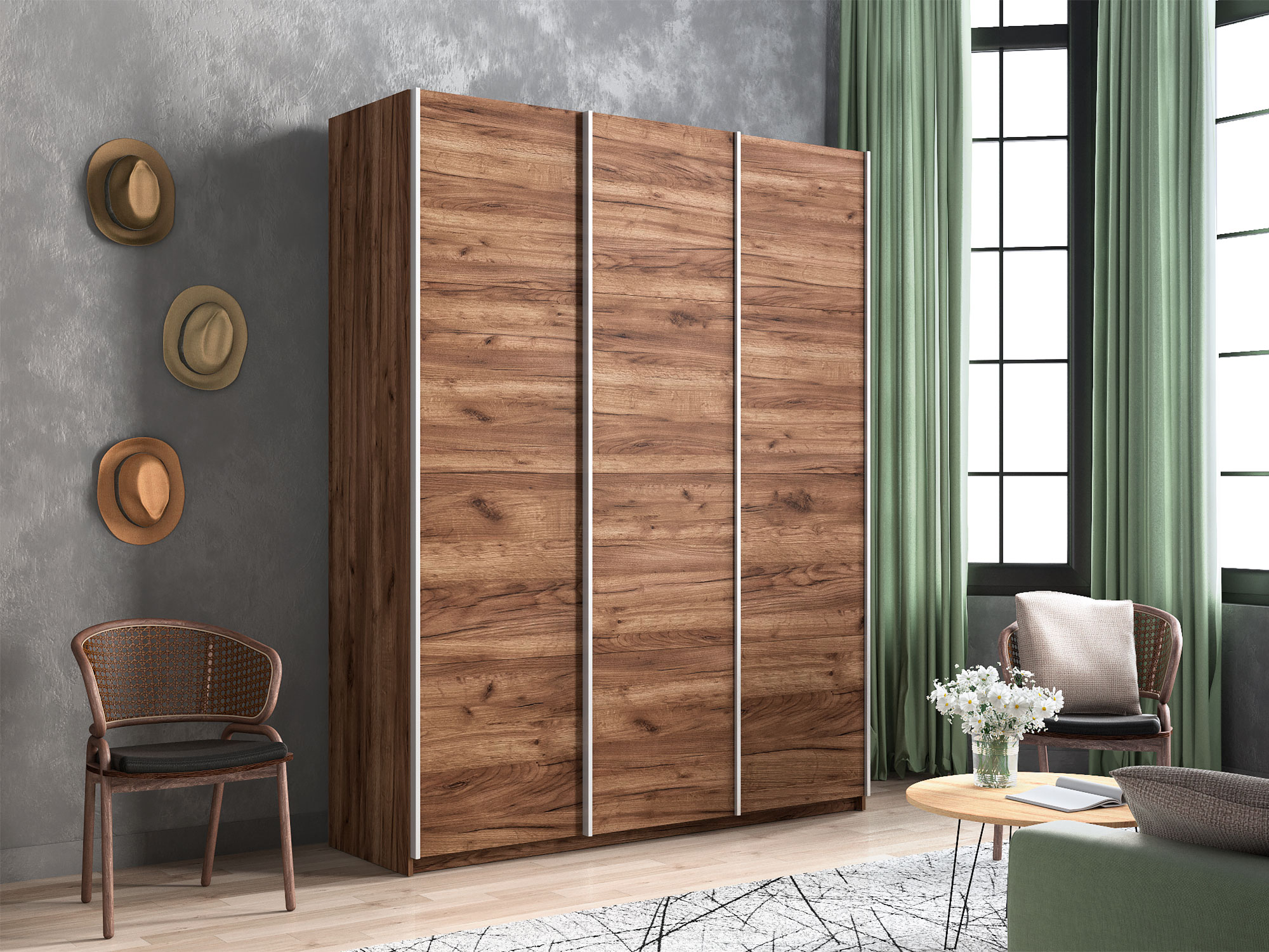 - Шкаф-купе Прайм 3-х дверный 1800 три ДСП Крафт табачный