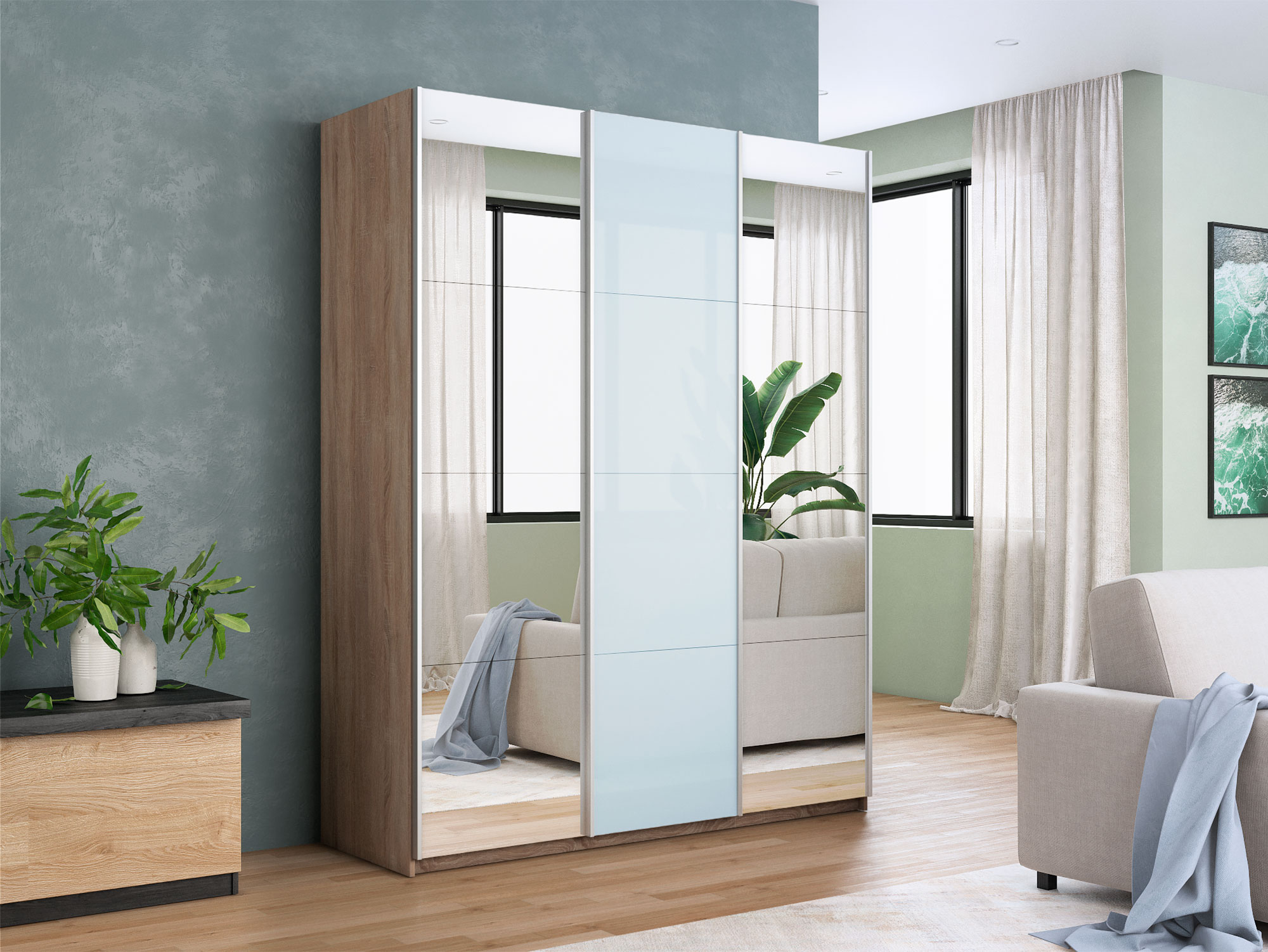 - Шкаф-купе Прайм 3-х дверный 1800 Зеркало/Стекло Белое/Зеркало Сонома