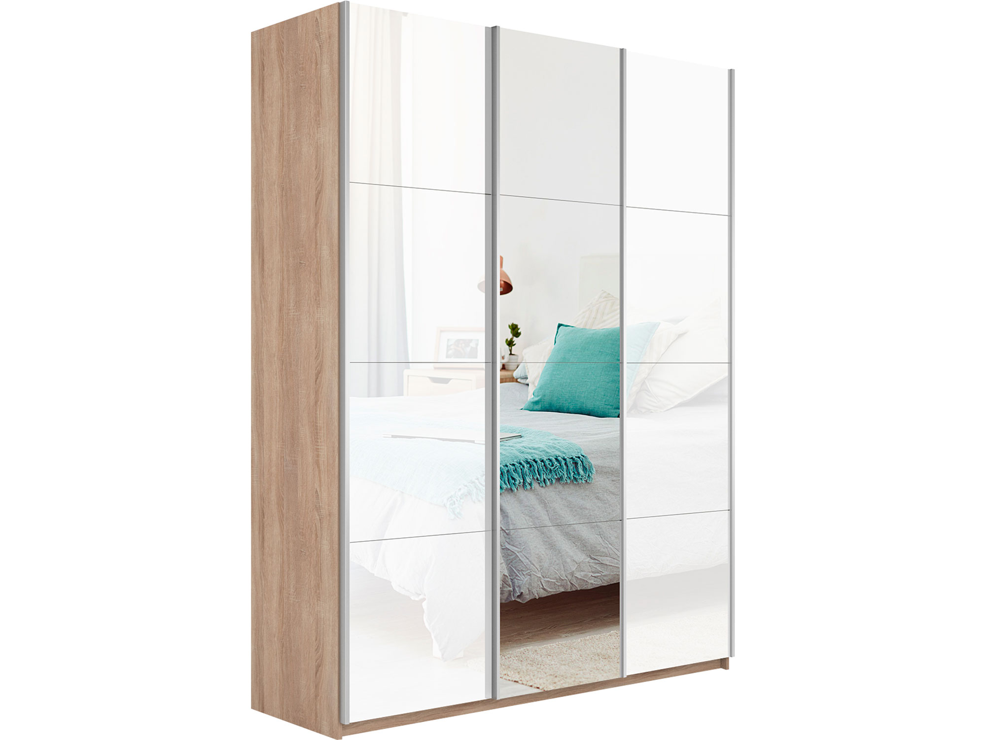 Шкаф-купе Прайм 3-х дверный 2100 два Стекла Белые/Зеркало Сонома