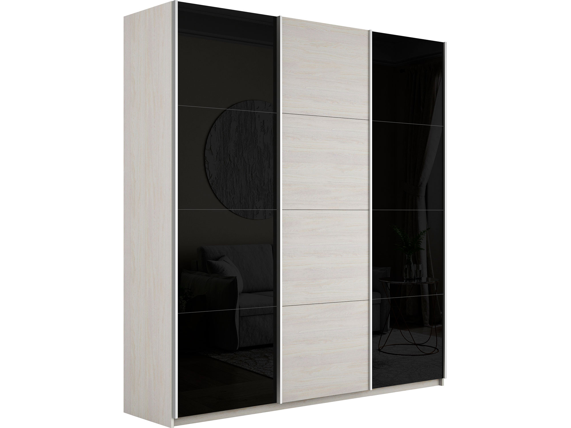 - Шкаф-купе Прайм 3-х дверный 2100 два Стекла Черные/ДСП Ясень Анкор Светлый