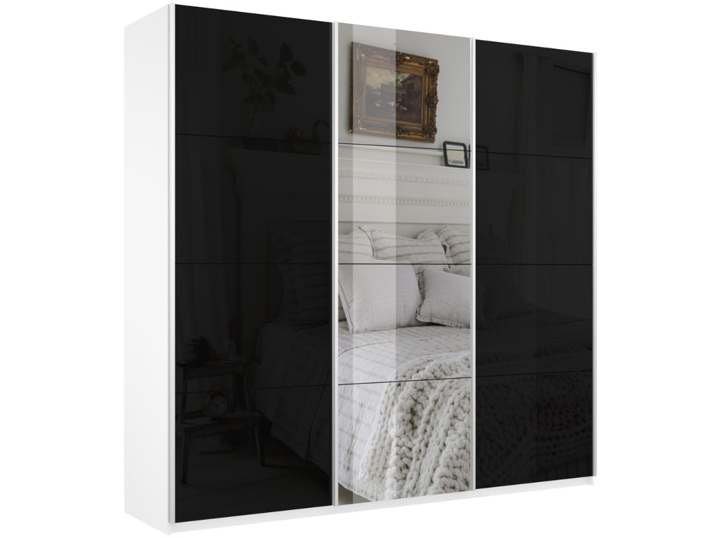- Шкаф-купе Прайм 3-х дверный 2100 два Стекла Черные/Зеркало Белый Снег