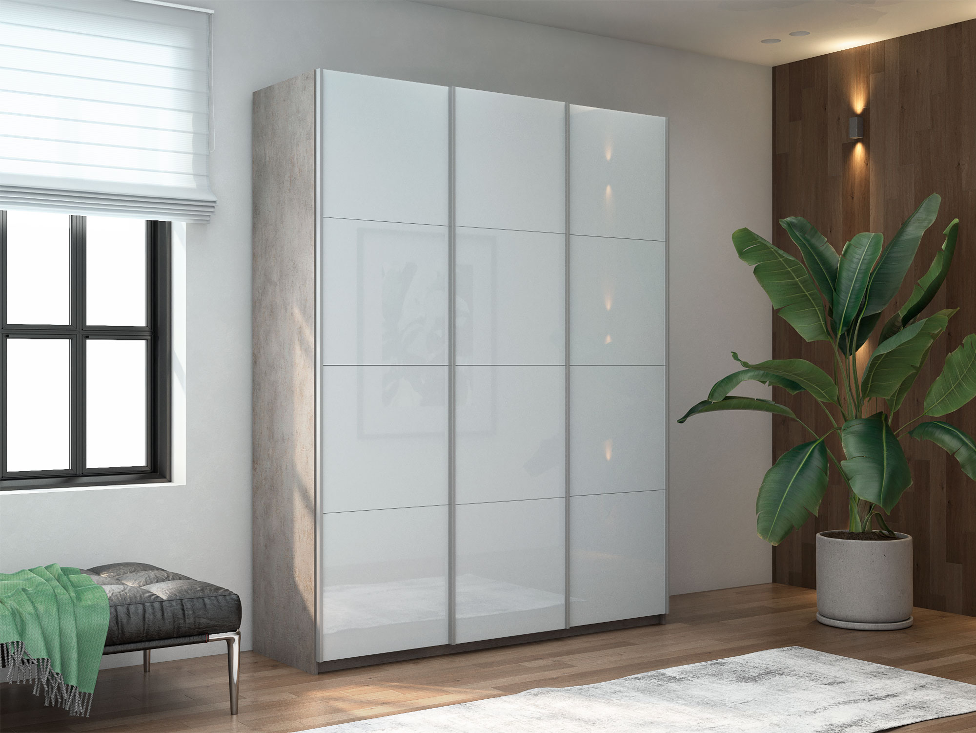 Шкаф-купе Прайм 3-х дверный 2100 три стекла белые Бетон