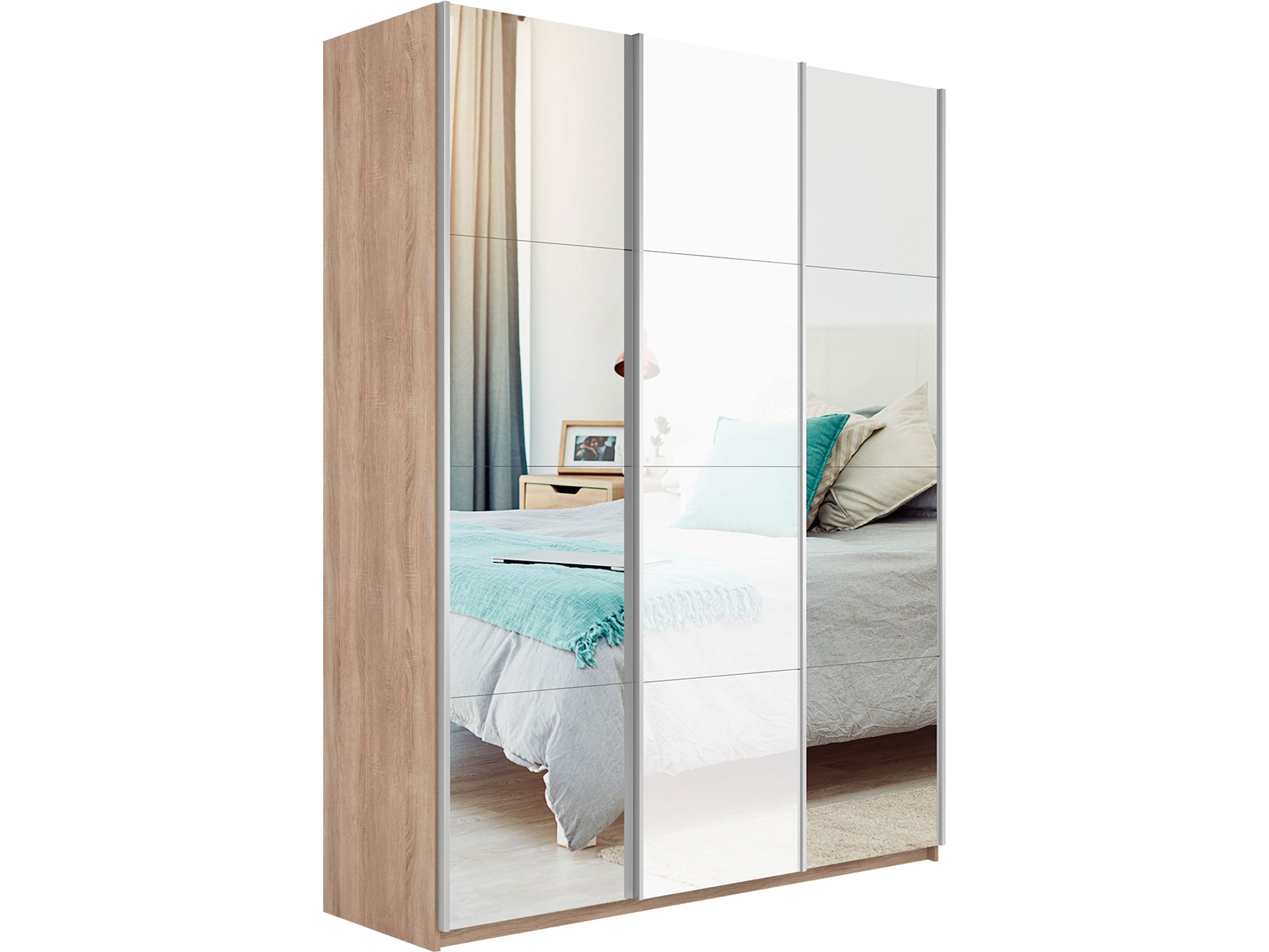 Шкаф-купе Прайм 3-х дверный 2100 Зеркало/Стекло Белое/Зеркало Сонома