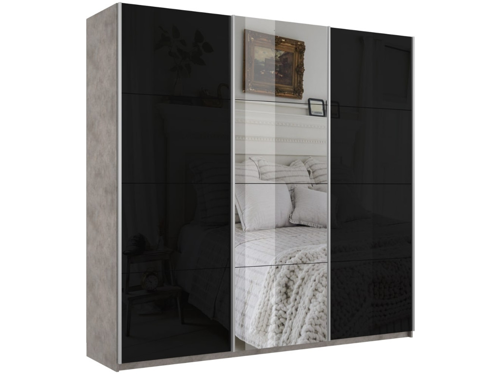 - Шкаф-купе Прайм Широкий 3-х дверный два черных стекла/зеркало Бетон
