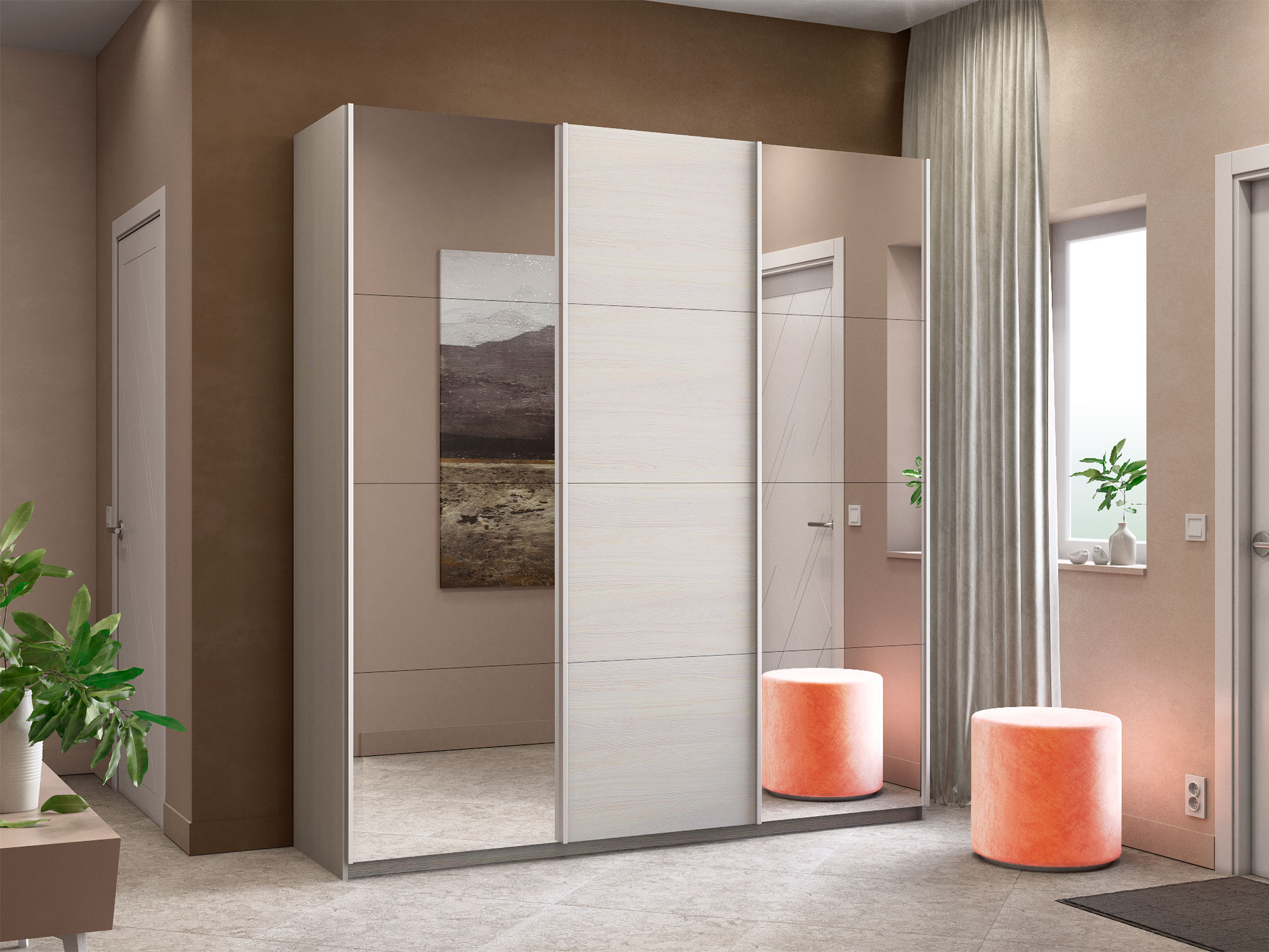 - Шкаф-купе Прайм Широкий 3-х дверный два зеркала/ДСП Ясень Анкор Светлый