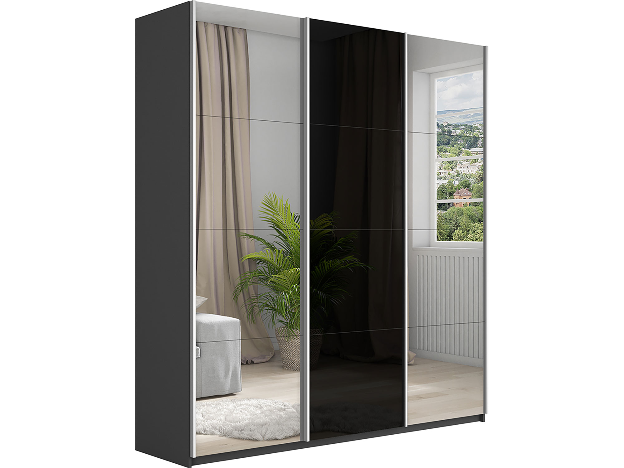 Шкаф-купе Прайм Широкий 3-х дверный два зеркала/стекло черное Серый Диамант