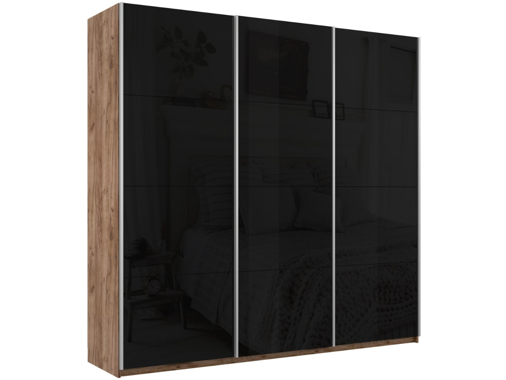 - Шкаф-купе Прайм Широкий 3-х дверный три черных стекла Крафт табачный
