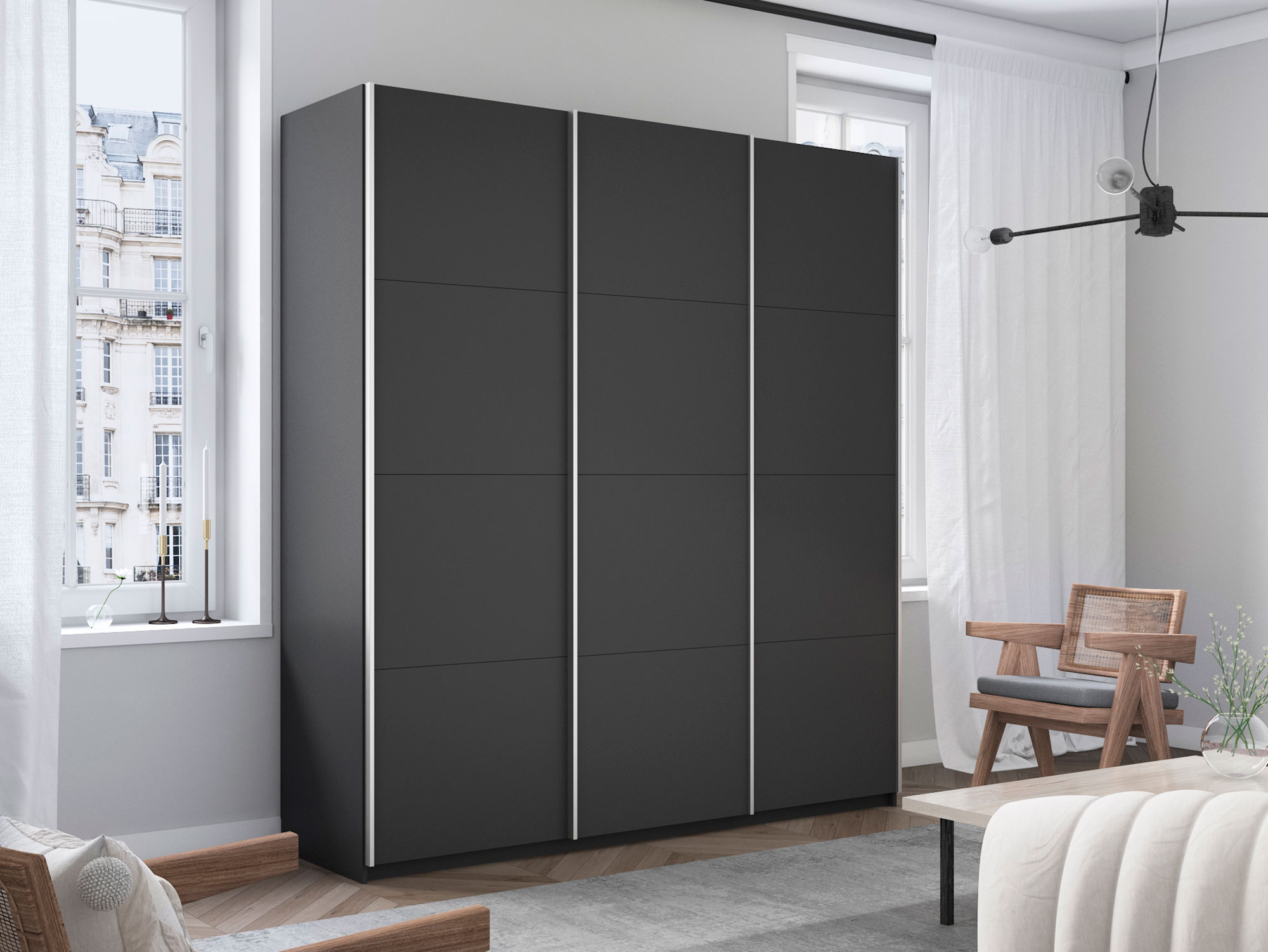 Шкаф-купе Прайм Широкий 3-х дверный три ДСП Серый Диамант