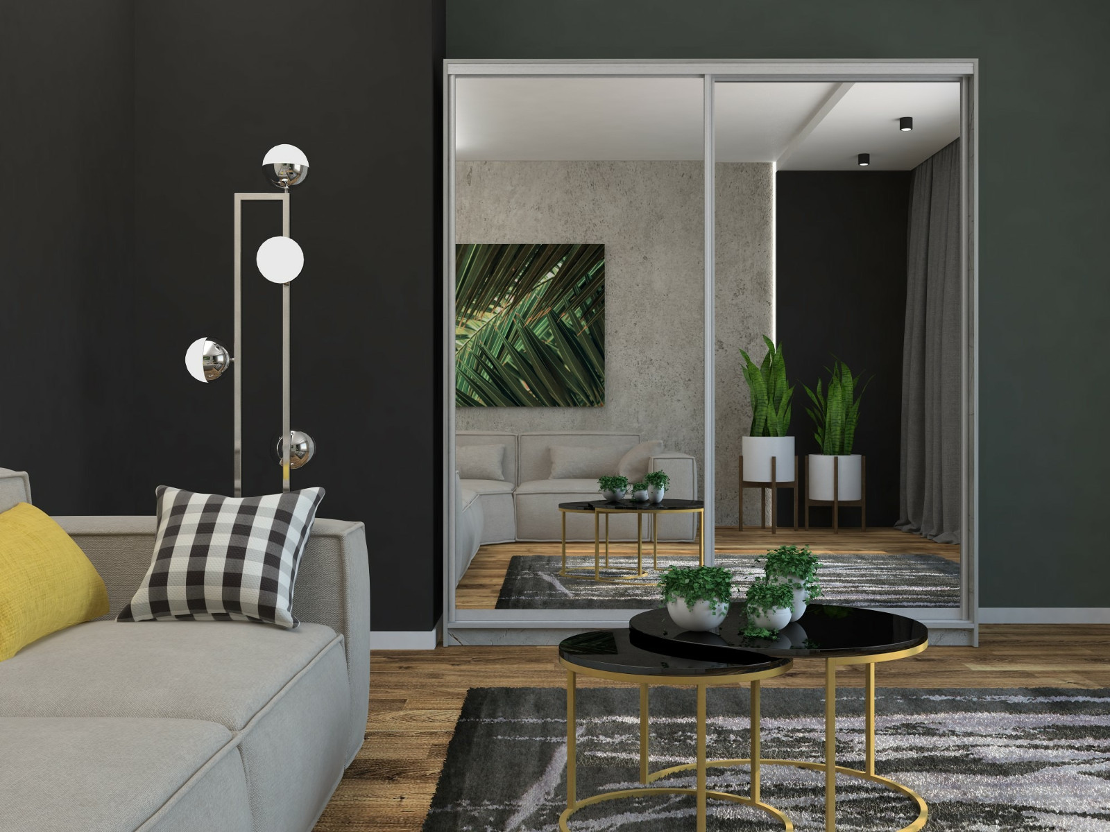 - Шкаф-купе Юлия 2400 зеркало/зеркало серый