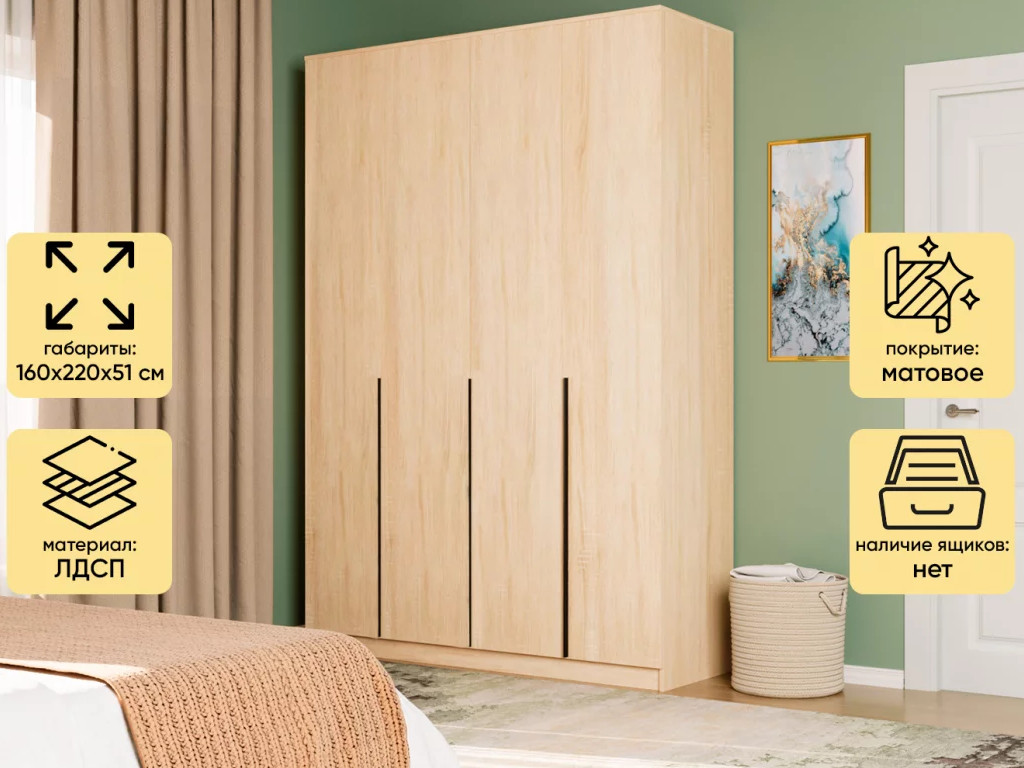 Шкаф Монблан New распашной 1600 4-х дверный Дуб сонома