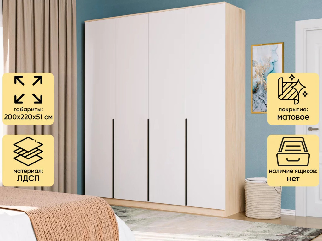 Шкаф Монблан New распашной 2000 4-х дверный Дуб сонома-Белый Шагрень