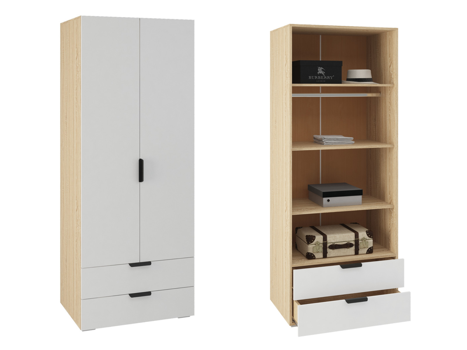 Шкаф Норд ШК2Я-800 2 двери, 2 ящикам дуб сонома/белый