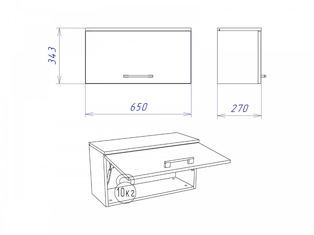Размер ШхГхВ: 650*270*343 мм