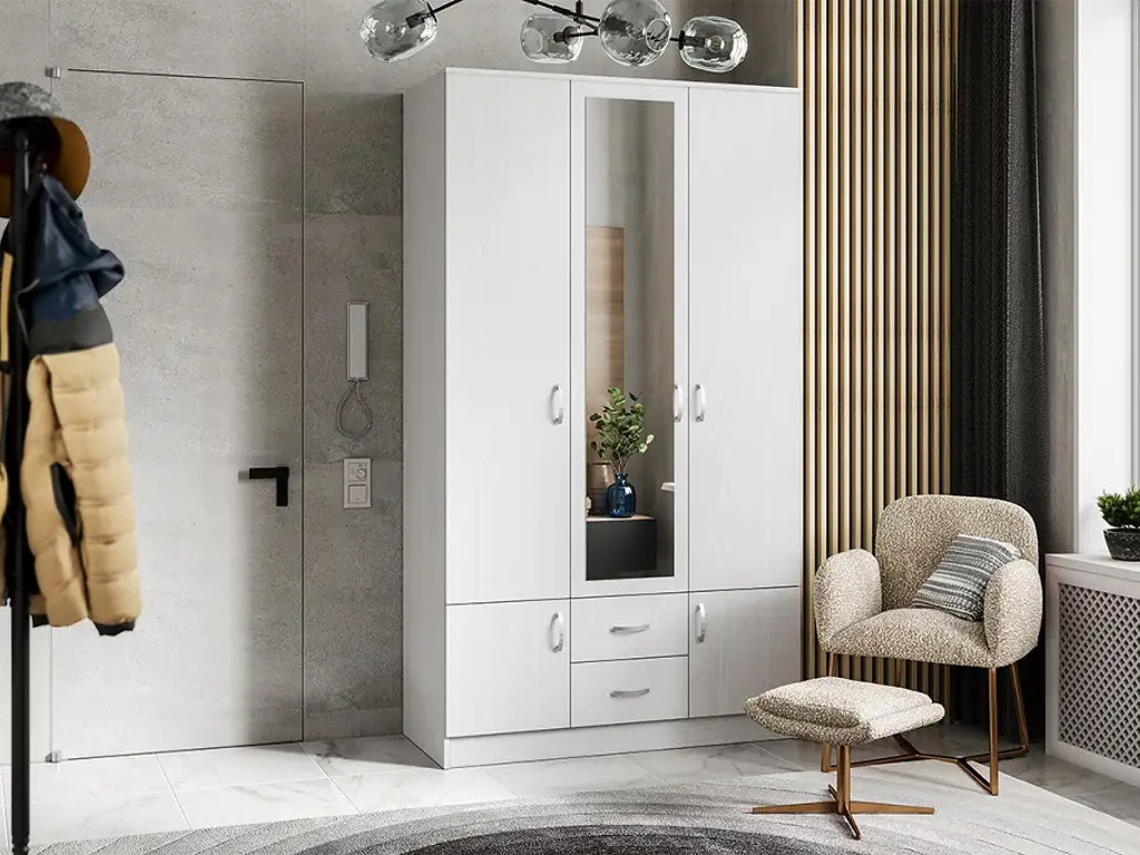 - Шкаф Ронда ШК-3 с зеркалом белое дерево