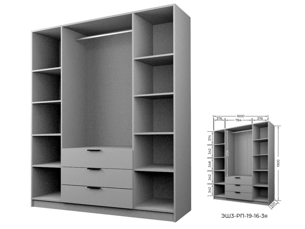 Шкаф с 3 ящиками Экон ЭШ3-РП-19-16-3я два зеркала
