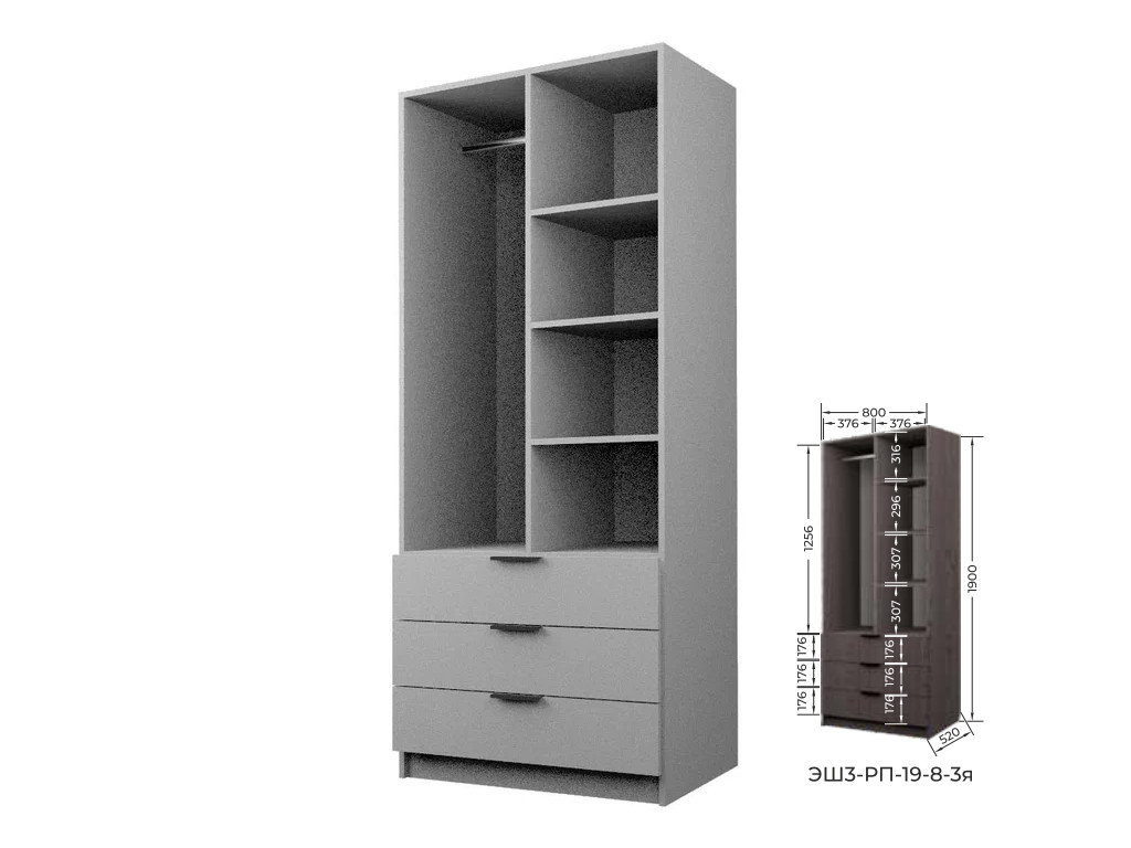Комплект: ЭШ3-РП-19-8-3я, Шкаф с 3 ящиками + два ЗС-19-3я, Зеркало для шкафов ЭШ 1900 мм