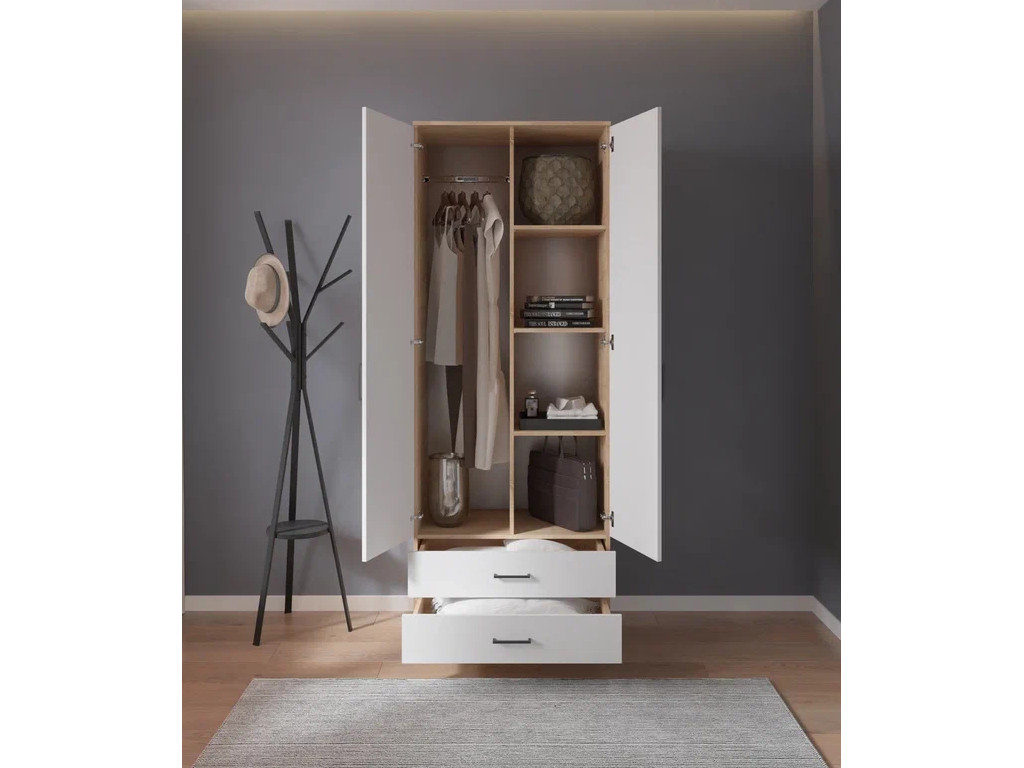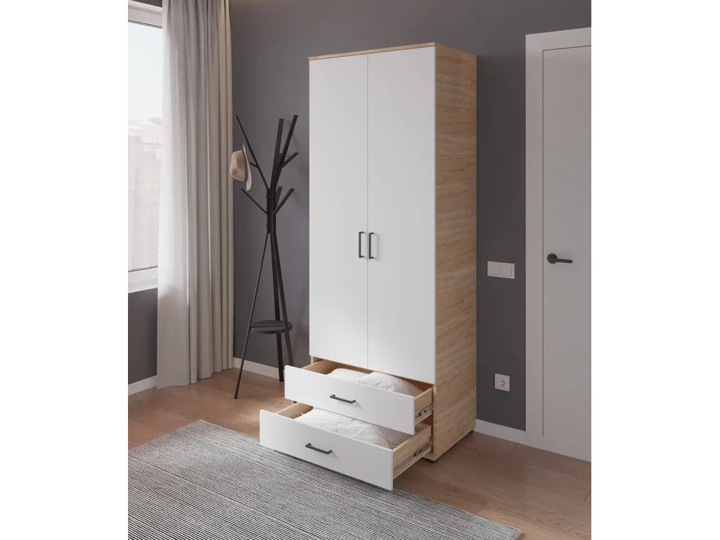 Шкаф с ящиками, штангой и полками арт. 556 дуб сонома/белый