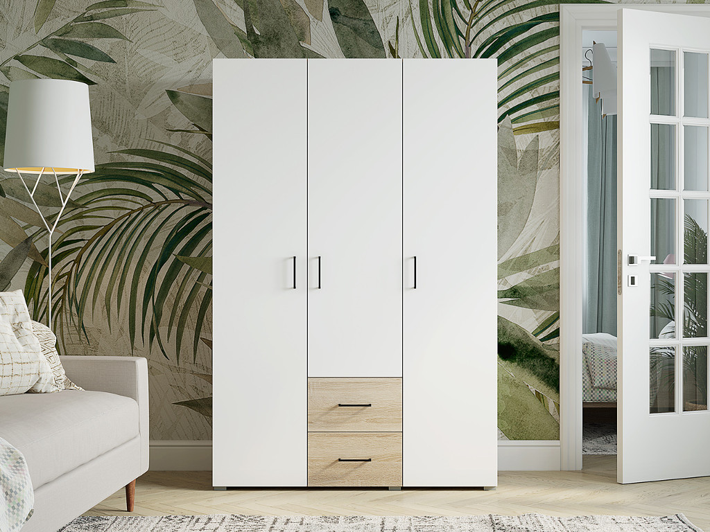 Шкаф трехстворчатый 2 ящика Victor Сонома-Белый