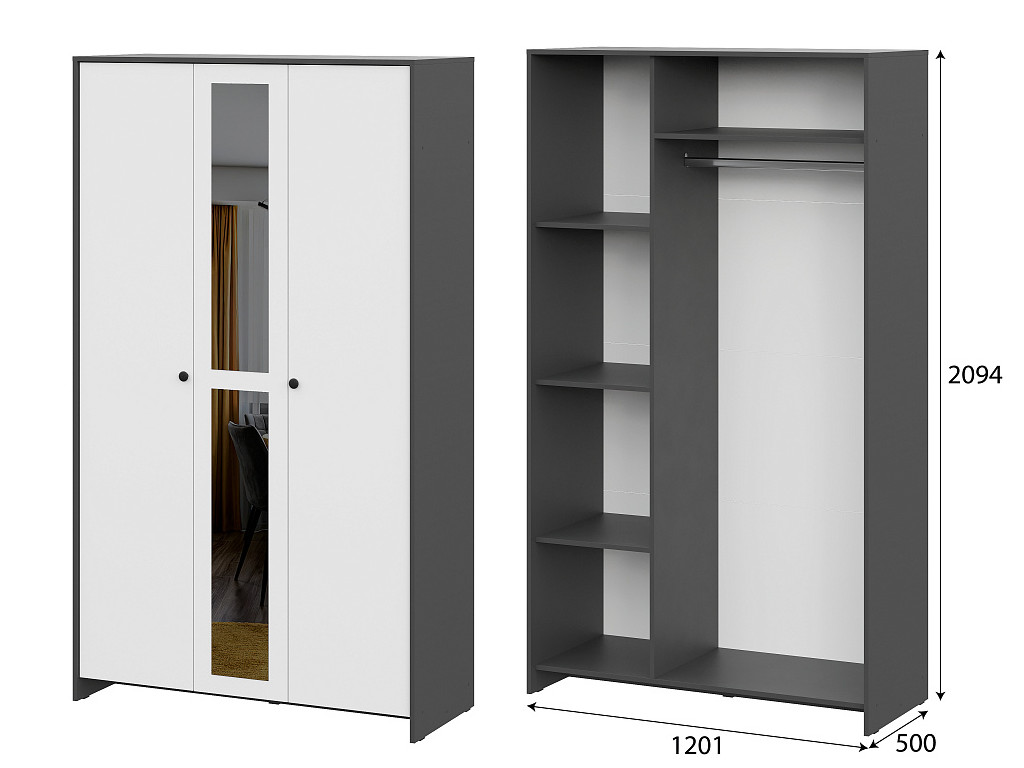 Шкаф трехстворчатый Дольче Графит/Белый