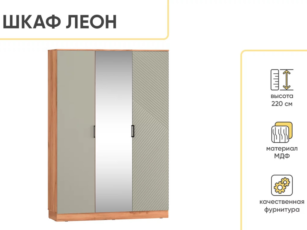 - Шкаф трехстворчатый Леон Софт грин