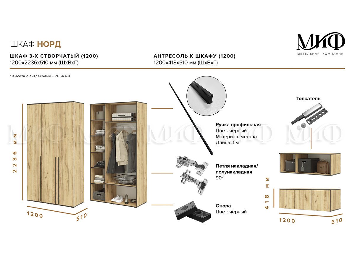 - Шкаф трехстворчатый Норд 1200 дуб крафт МГ