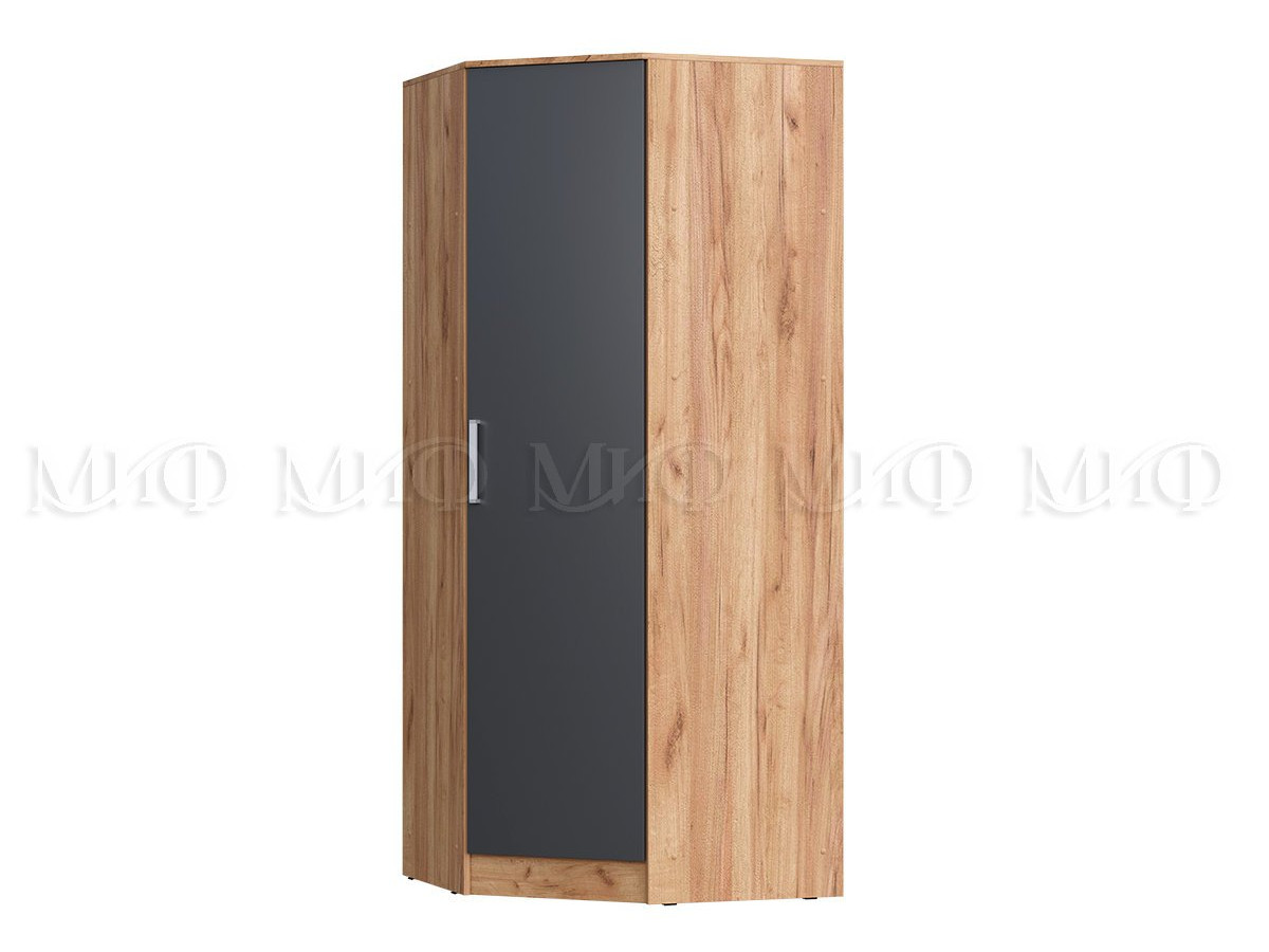 - Шкаф угловой для одежды в спальню Мартина Графит, Дуб крафт