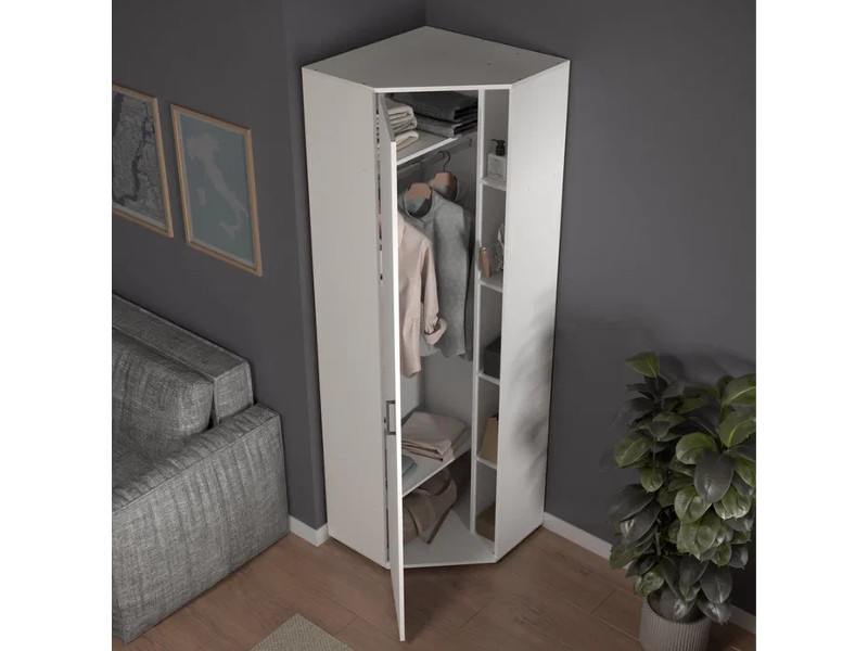- Шкаф угловой со штангой и полками арт. 522 белый