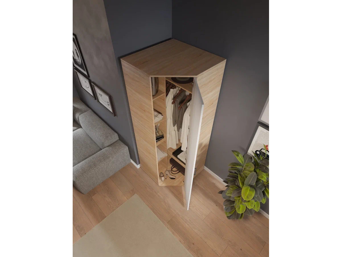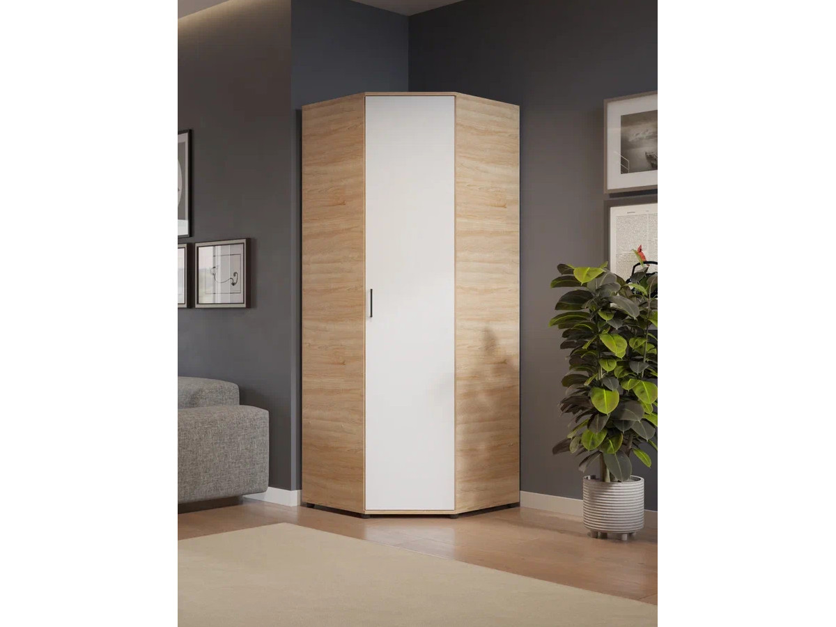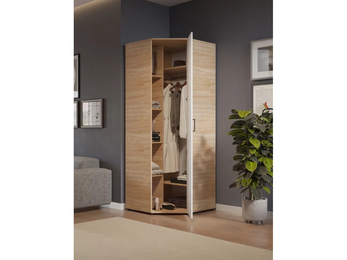 - Шкаф угловой со штангой и полками арт. 557 дуб сонома/белый