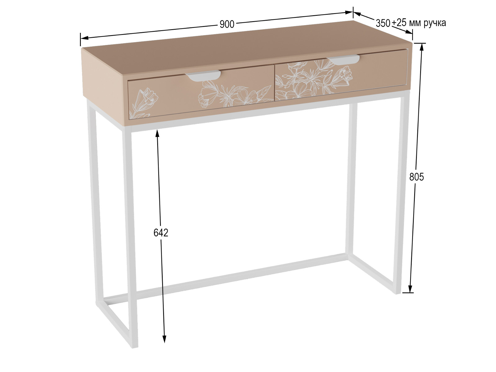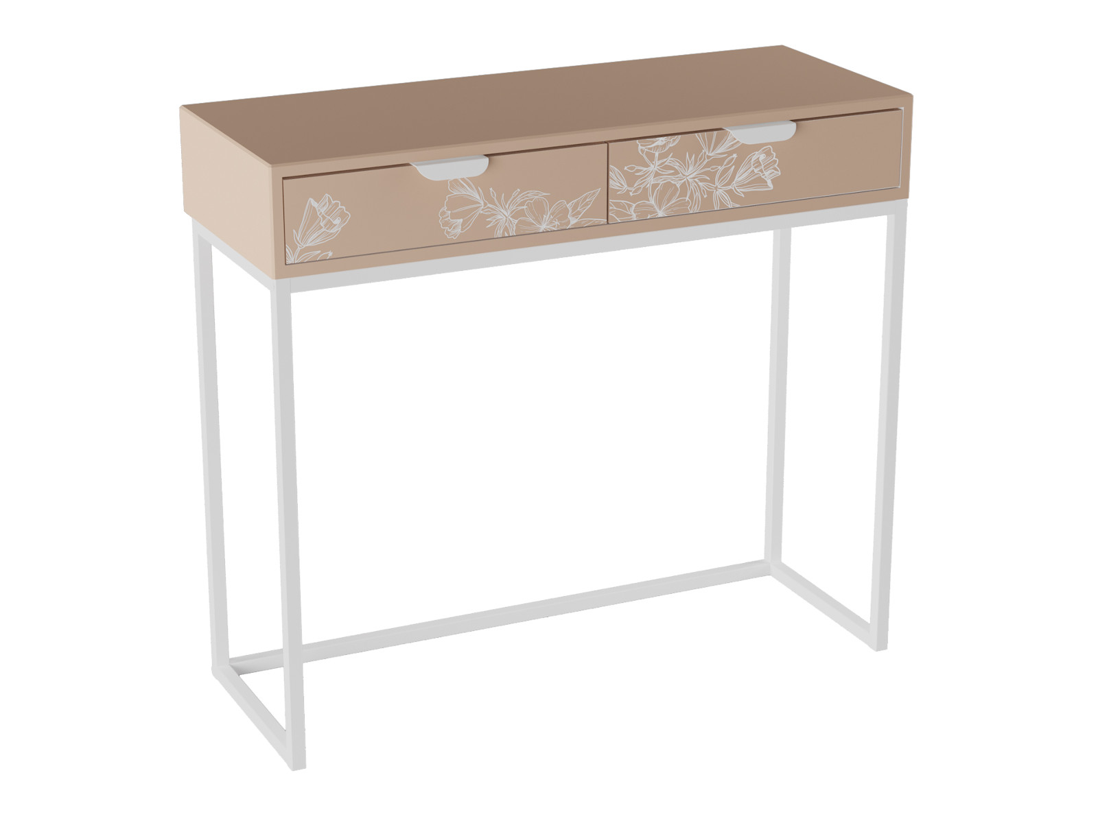 Разборный каркас консоли выполнен из профильной трубы, столешница, полки и основание- из прочного и влагостойкого материала МДФ, облицованного декоративным покрытием в современном цветовом решении.